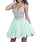 LMBRIDAL Women's Beading A Line Homecoming Dress Chiffon Halter Prom Gowns Mint 22W